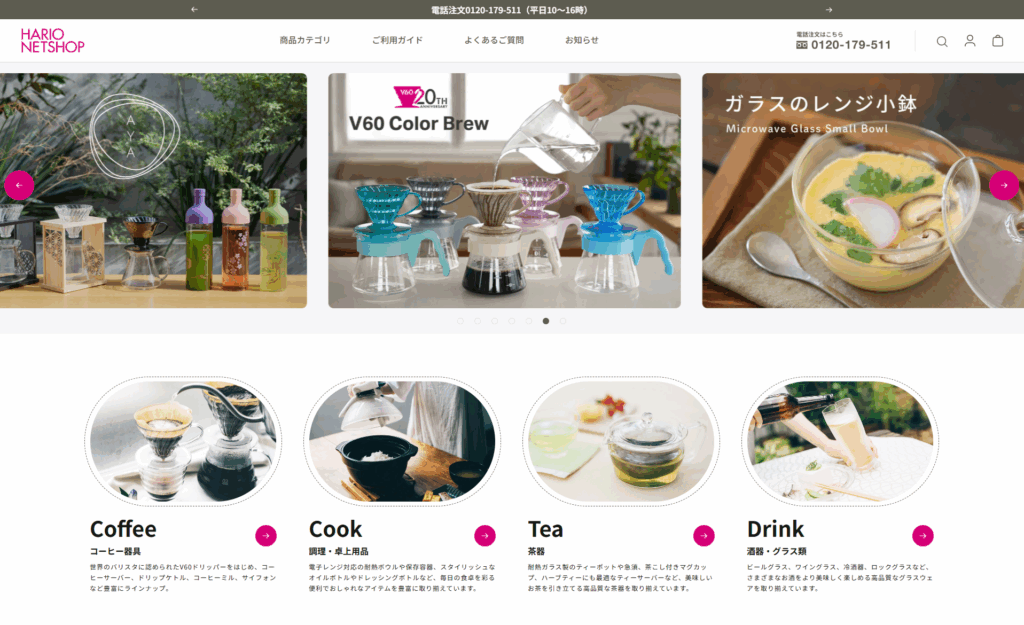 主に耐熱ガラス製品を中心に、コーヒー・紅茶などの飲料器具、